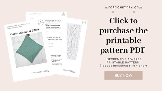 To make the process easier for you, I’ve prepared a free crochet pattern for the Cable Diamond Pillow cover.