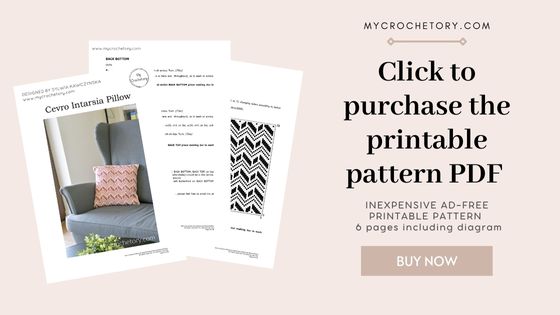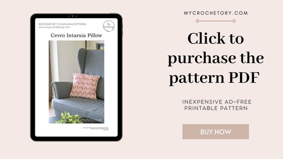 The intarsia crochet pillow you make following this pattern is yours you are free to sell it, as long as you credit MyCrochetory as original designer. For more information, please, read Terms Page.