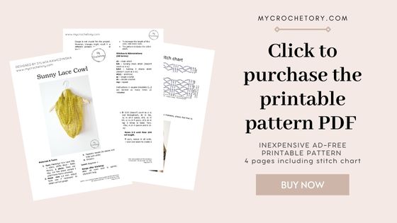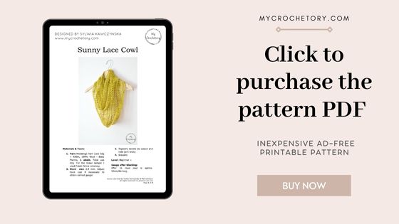 If you want to share your wips and finished lace infinity scarf crochet pattern on social media, please, use hashtag #mycrochetory and #sunnylacecowl.