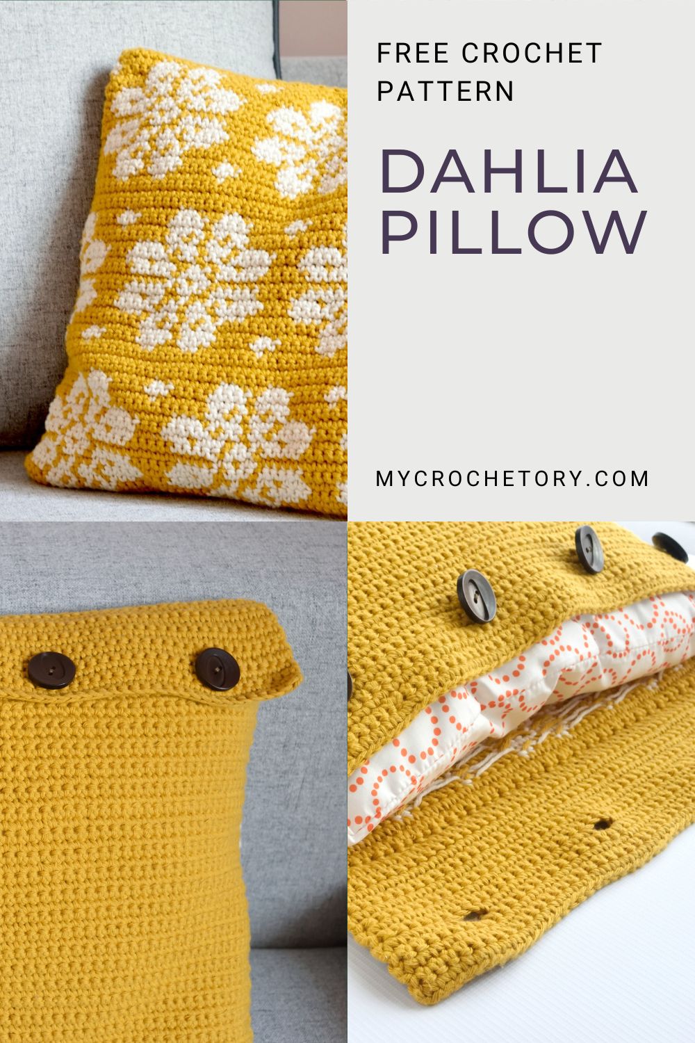 If you want to share your wips and finished Dahlia intarsia crochet pillow cover pattern on social media, please, use hashtag #mycrochetory. I love to see your finished project!