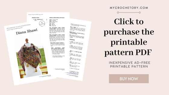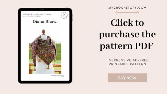 If you want to share your wips and finished Diana herringbone crochet stitch shawl on social media, please, use hashtag #mycrochetory. I love to see your finished project!