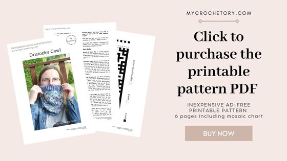 I am very happy to share with you my new mosaic crochet cowl pattern called the Drutozlot Cowl.