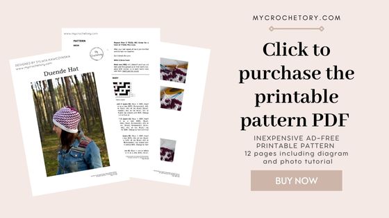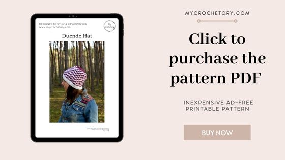 If you want to share your wips and finished hat on social media, please, use hashtag #mycrochetory or #duendehat. I love to see your finished project!