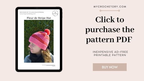 That’s exactly what led me to design the Fleur de Stripe Hat – a crochet beanie that looks like knitting, but works up with just a hook and yarn. No fussy needles required!