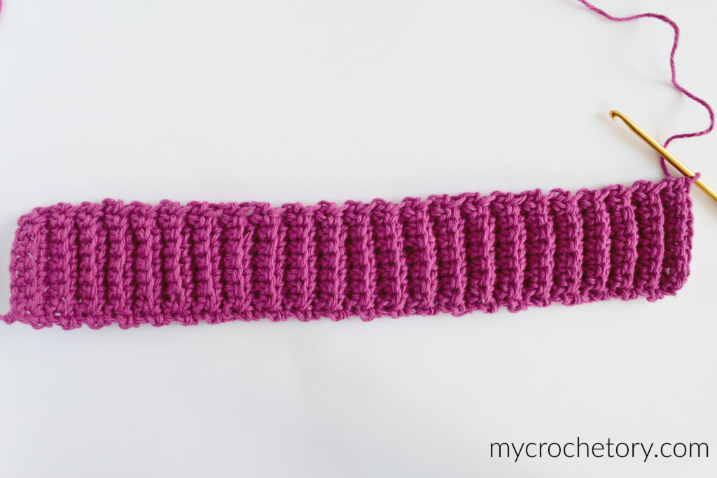 Now simply repeat Row 2 until desired length of your crochet ribbing has been reached.