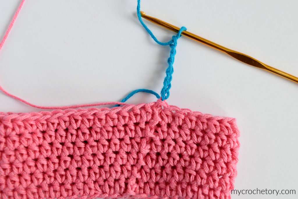 Because I want you to see the stitches more easily I will change the yarn for contrasting color.