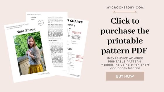 If you want to share your wips and finished shrug on social media, please, use hashtag #mycrochetory. I love to see your finished project!