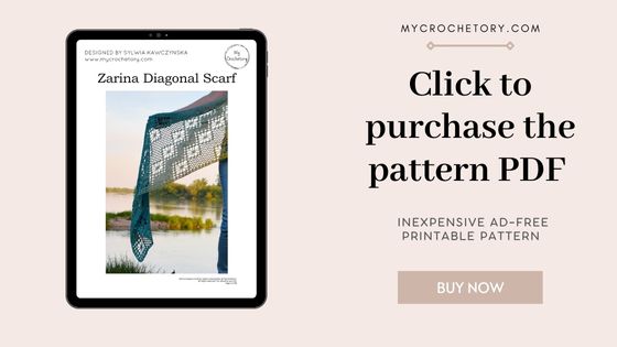 If you want to share your wips and finished scarf on social media, please, use hashtag #mycrochetory. I love to see your finished project!